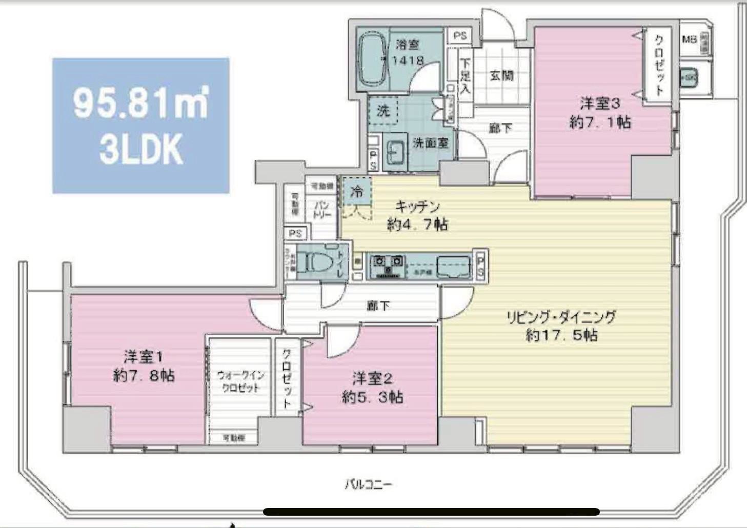 | 間取内容 | 洋室7.8畳 洋室5.3畳 洋室7.1畳 LD17.5畳 K4.7畳 | ||