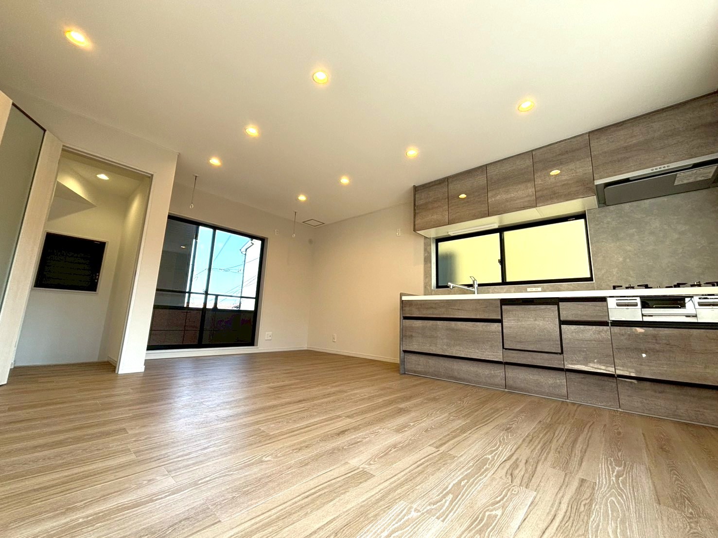 浴室暖房 浴室乾燥機 トイレ2ヶ所 温水洗浄便座 シャワー付洗面化粧台 全居室収納 クローゼット 照明器具 間接照明 人感センサー付照明 ダウンライト フットライト 室内物干し 都市ガス 全居室フローリング 電気 上水道 下水道 側溝 モニタ付インターホン