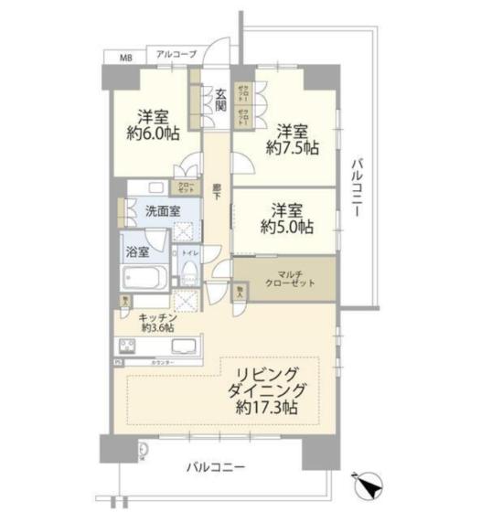 | 間取内容 | DK17.3畳 K3.6畳 洋室5畳 洋室7.5畳 洋室6畳 | ||